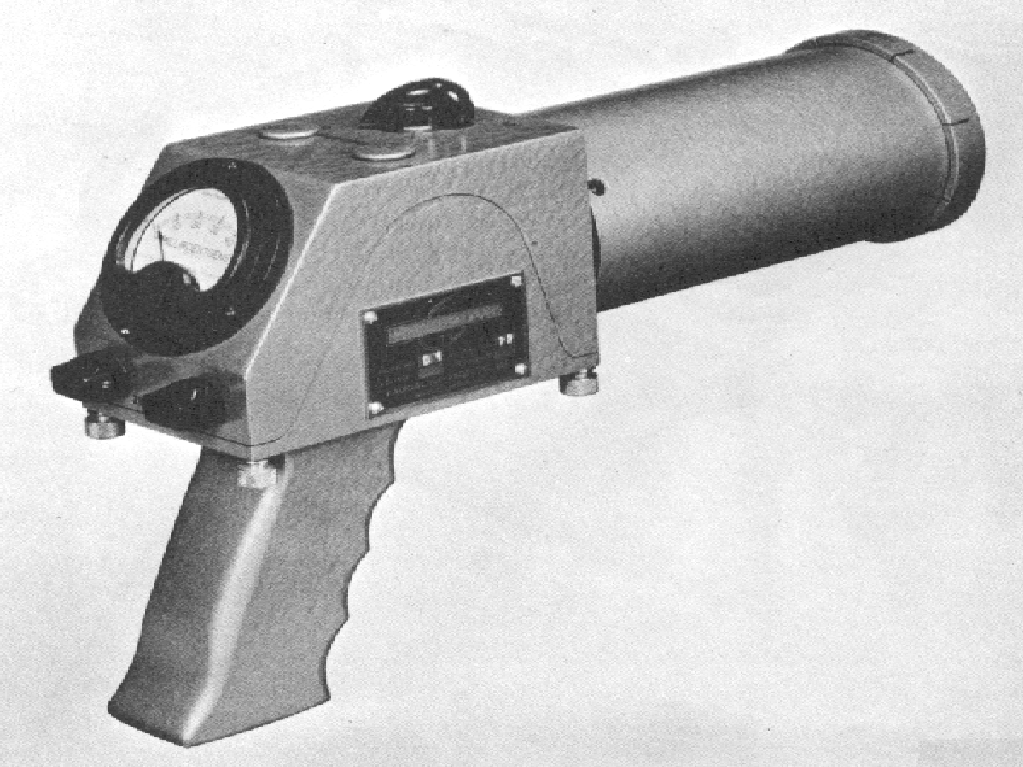 The Raychronix Model D-1A Cutie Pie Survey meter was introduced in 1953. It had an ionization chamber with a beta ray end window. It had two ranges of 50 mR/h and 5 R/h. The unit weighed 2.5 lbs.