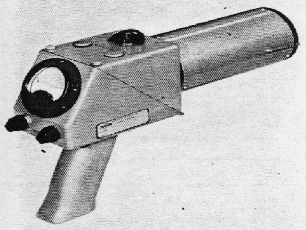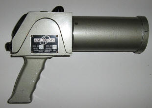 The Raychronix Model D1 was introduced in 1950 as a beta-gamma survey meter. The unit was an ionization type battery operated unit with a pistol grip. It predecessor was the Oak Ridge Cutie Pie and was used at the Los Alamos National Laboratory in 1954. The ion chamber has a 600 cc volume and is 3” in diameter x 6" long. The unit was calibrated with a Bureau of Standards certified radium source. The end of the chamber has a 3" thin pliofilm window. It has a cast aluminum case. The batteries are located in the handle. The positive internal pressure is maintained by a naphthalene moth ball mounted in the case. This help avoid “breathing” problems associated with high humidity. It has three-decade ranges from 50 to 5,000 mR/h. It uses one 1.5 and four 22.5 volt batteries. The unit is 11” long x 3” wide x 8” high and weighs 2.5 lbs.