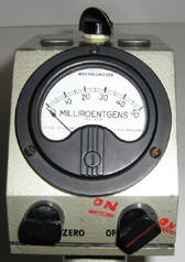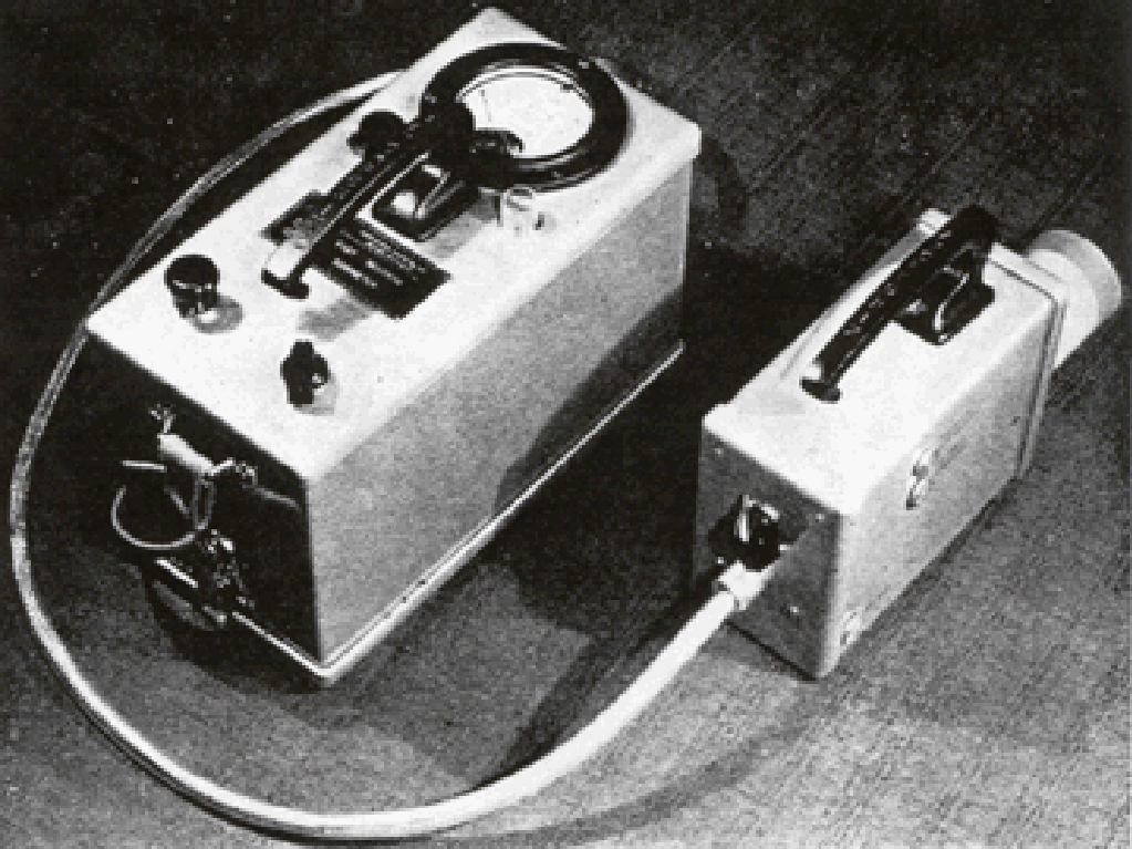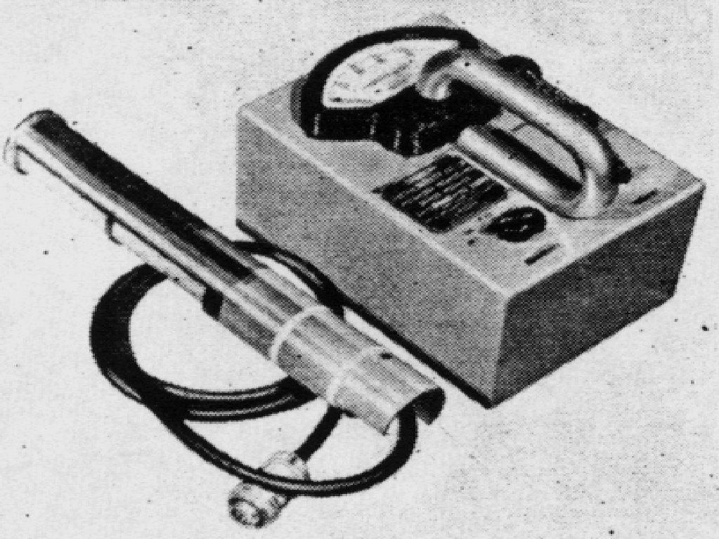 The Fast Neutron Dosimeter was offered in 1954 to measure dosage rates for fast neutrons. It has a proton recoil proportional counter. The unit had three ranges from 5, 50 and 500 mR/h. The main unit is 4-3/8” x 5.5”x 10”. The counter unit was 3” wide x 5” high x 6.5” long and weighed 10 lbs.